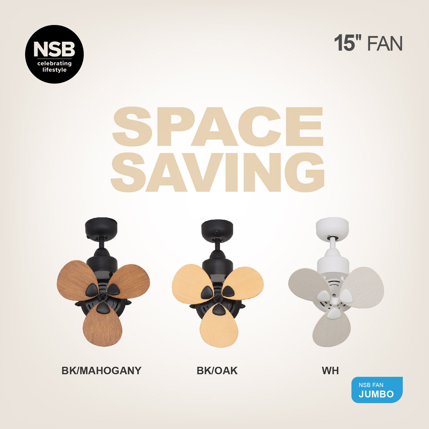 NSB JUMBO OSCILLATING 15” CEILING FAN