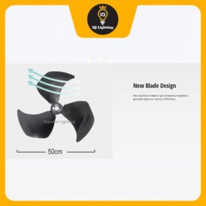 The 50cm diameter aluminum blades produce plenty of strong airflow, and the specially shaped turbo fin guard concentrates the airflow and delivers it farther. 3-step air speed switching is also available by a pull-switch easily.