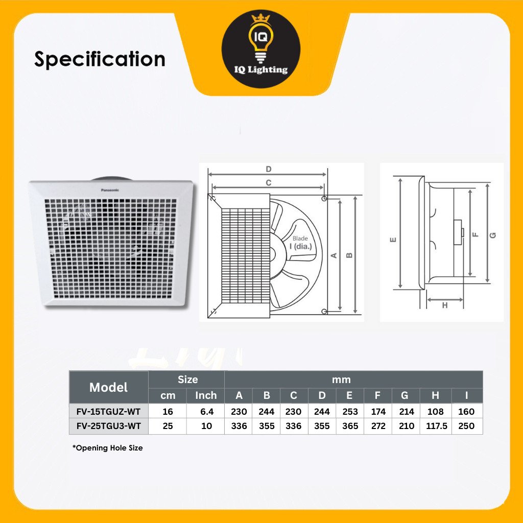 PANASONIC CEILING MOUNT VENTILATING FAN / FV-15TGUZ-WT/FV-25TGU3-WT/FV-20TGU603 /Exhaust Ventilation Fan 抽烟油机