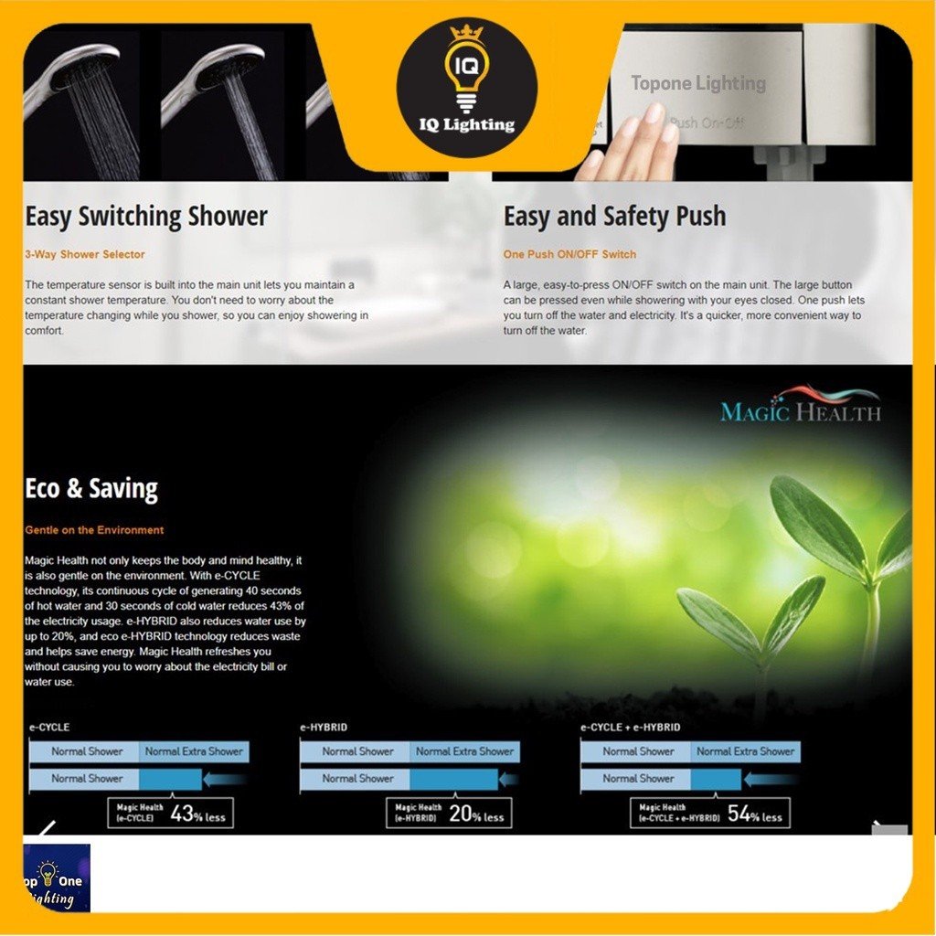 The N series Home Shower has a luxurious, sleek elegant design. It offers reliable safety with a stylish appearance that matches bathroom spaces. The water temperature is maintained by electronic control, which lets you set the temperature with large LCD panel operation. The Magic Health function relaxes body and mind for a more comfortable shower time.