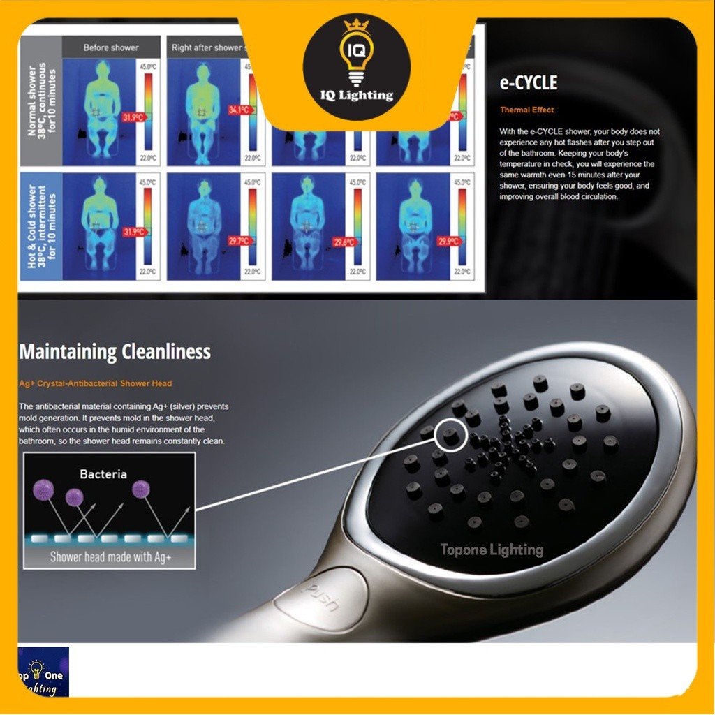 With the e-CYCLE shower, your body does not experience any hot flashes after you step out of the bathroom. Keeping your body’s temperature in check, you will experience the same warmth even 15 minutes after your shower, ensuring your body feels good, and improving overall blood circulation.