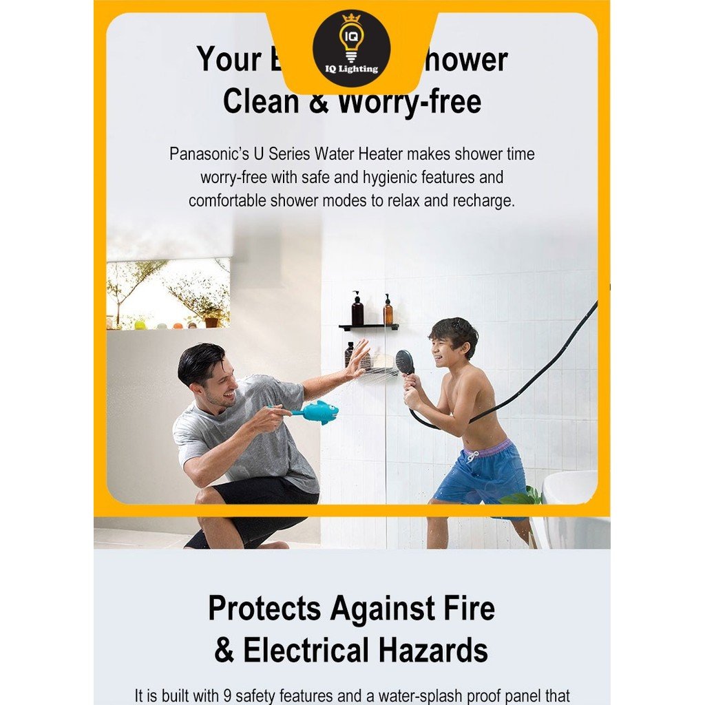 Leave your worries out of the bathroom. Panasonic U Series is built with 9 safety features that help to prevent electric shocks, fire & burn. The shower panel is water-splash proof to protect the internal components, while the Ag+ Crystal Material prevents the growth of bacteria for a more carefree shower eXperience.