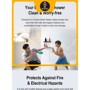 Leave your worries out of the bathroom. Panasonic U Series is built with 9 safety features that help to prevent electric shocks, fire & burn. The shower panel is water-splash proof to protect the internal components, while the Ag+ Crystal Material prevents the growth of bacteria for a more carefree shower eXperience.