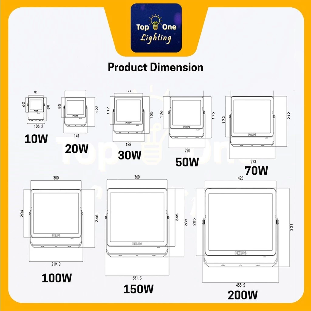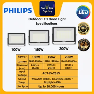 – Wattage (W): 100w / 150w / 200w