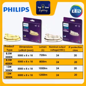 Be the first to review “🔥NEW🔥 PHILIPS DC24V 5M COB LED Strip High Density 320 LED / Flexible LED Light Strip 3000K 4000K LED Tape / COB LED 灯带”