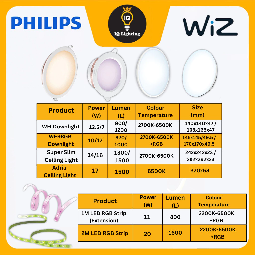 PHILIPS Wiz Tunable White | 3 Color Smart Bulb E27 E14 GU10 LED Bulb Downlight Ceiling Lamp Plug 1M/2M RGB Strip Mentol