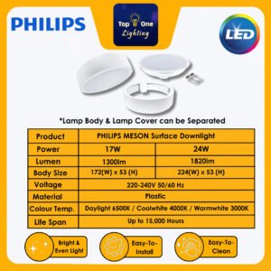 PHILIPS MESON Surface Downlight 7″ 17W | 9″ 24W LED Surface Mounted Panel Light 59472 59474 Lampu Siling