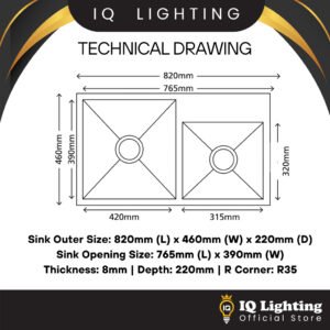 – Outer Dimension (mm): 820(L) x 460(W) x 220(D)