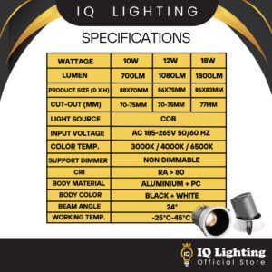 Wattage : 10W / 12W / 18W