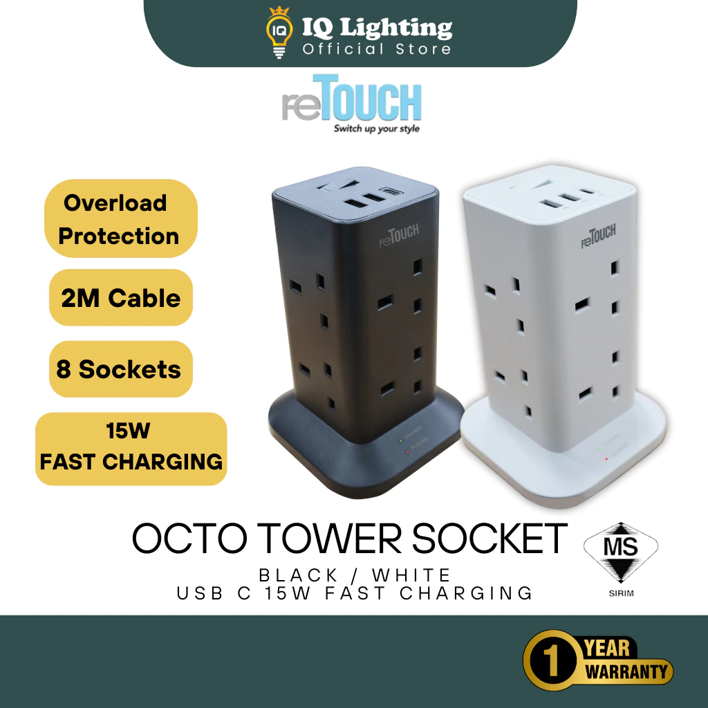 🔥SIRIM🔥 reTouch Octo Tower Socket with Surge Protection and Overload Protection Extension Socket SIRIM approved