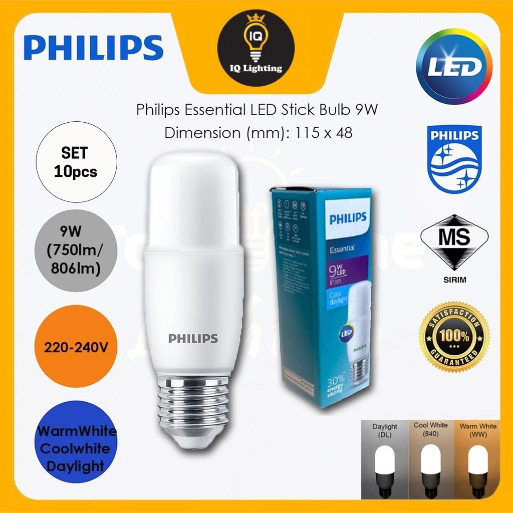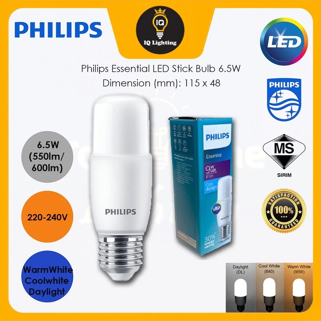 (A) PHILIPS Essential 6.5W / 9W / 11W E27 LED Stick Bulb Philips LED Bulb