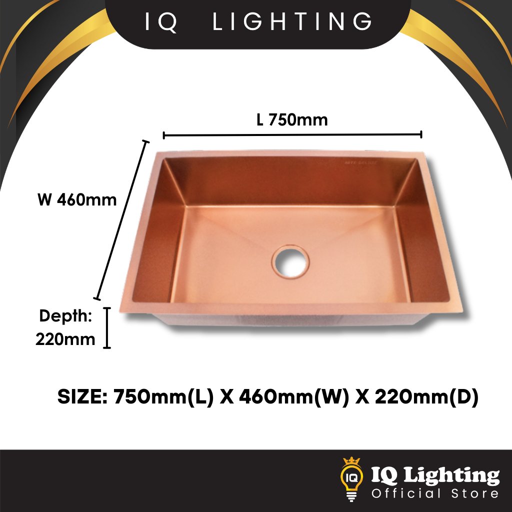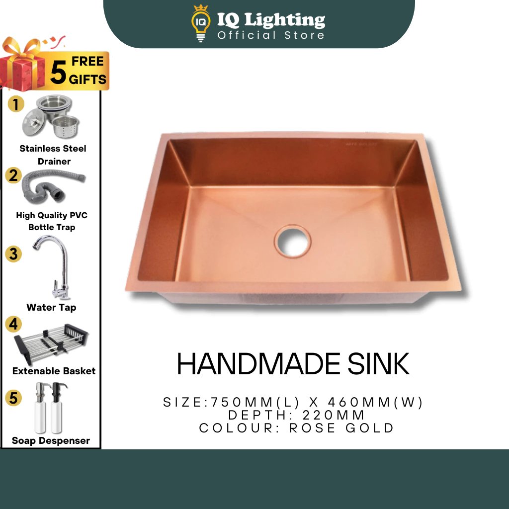 SINK NANO 304 Stainless Steel Nano Handmade Single Sink (Rose Gold) 750x460mm Dapur Bowl Kitchen Sink Basin Sinki Dapur