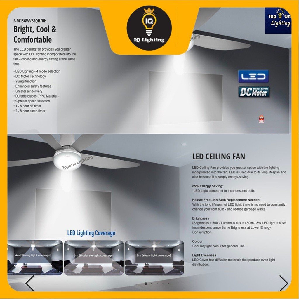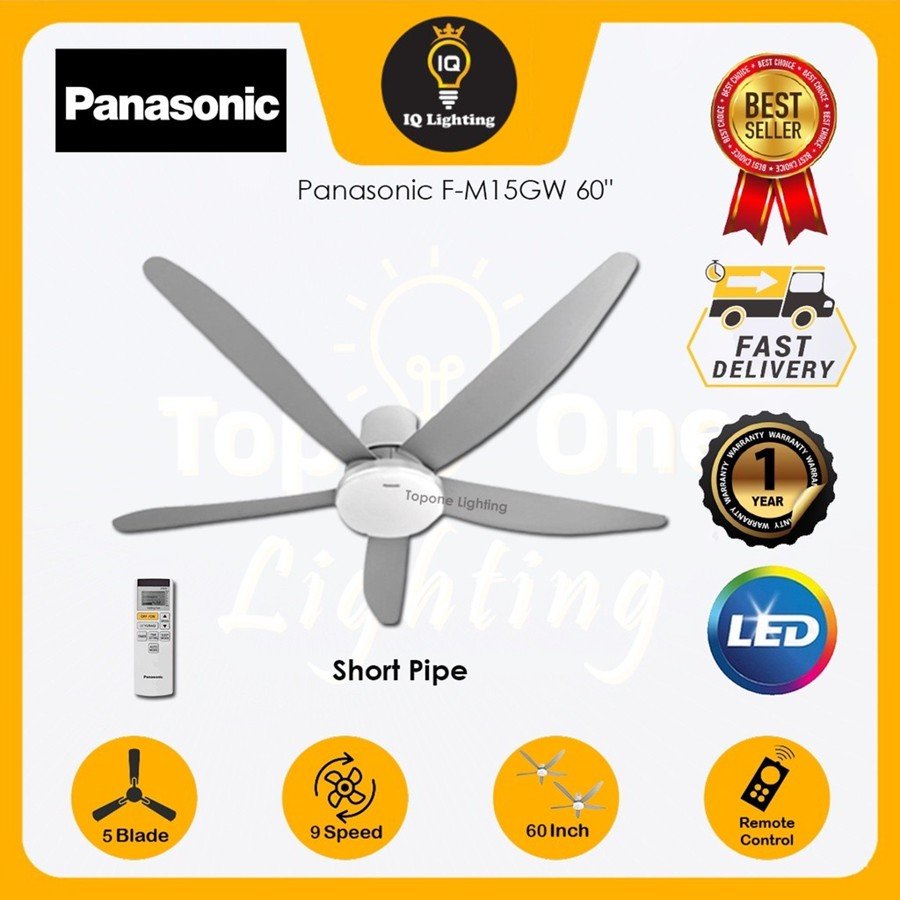 [SIRIM] PANASONIC F-M15GW 60″ 5 Blade DC Motor 3 Color LED Light Remote Control Ceiling Fan Short/Long Pipe Kipas Siling