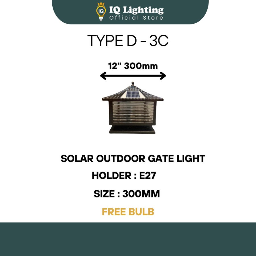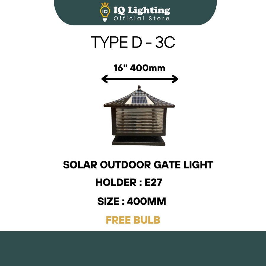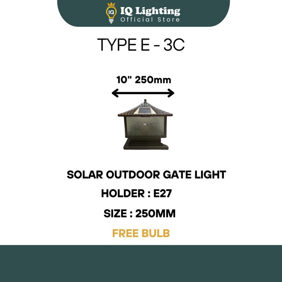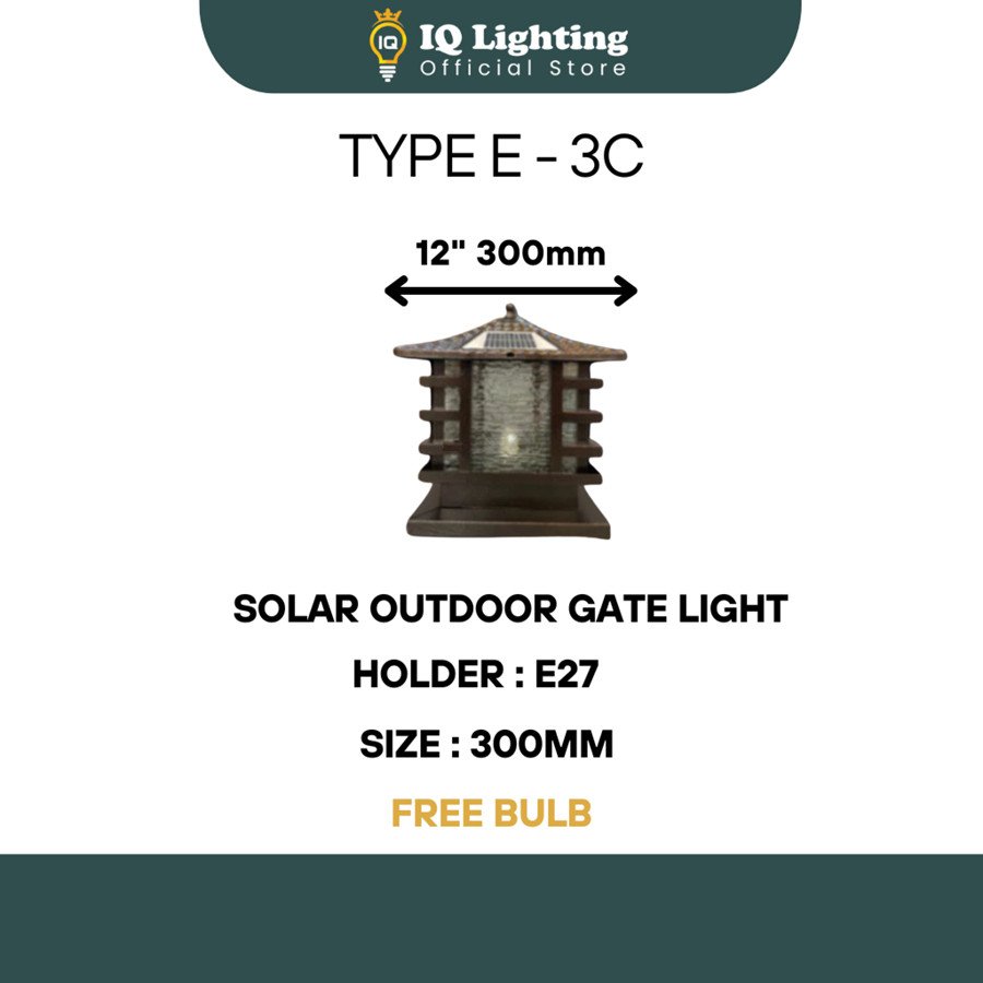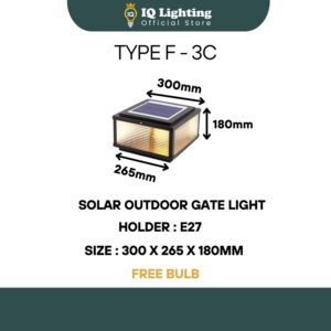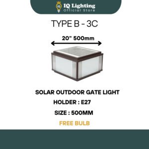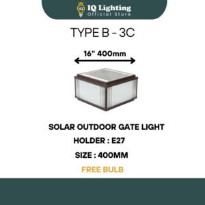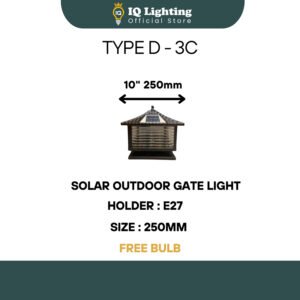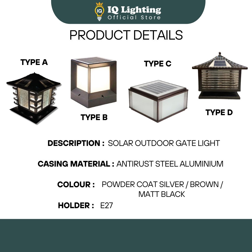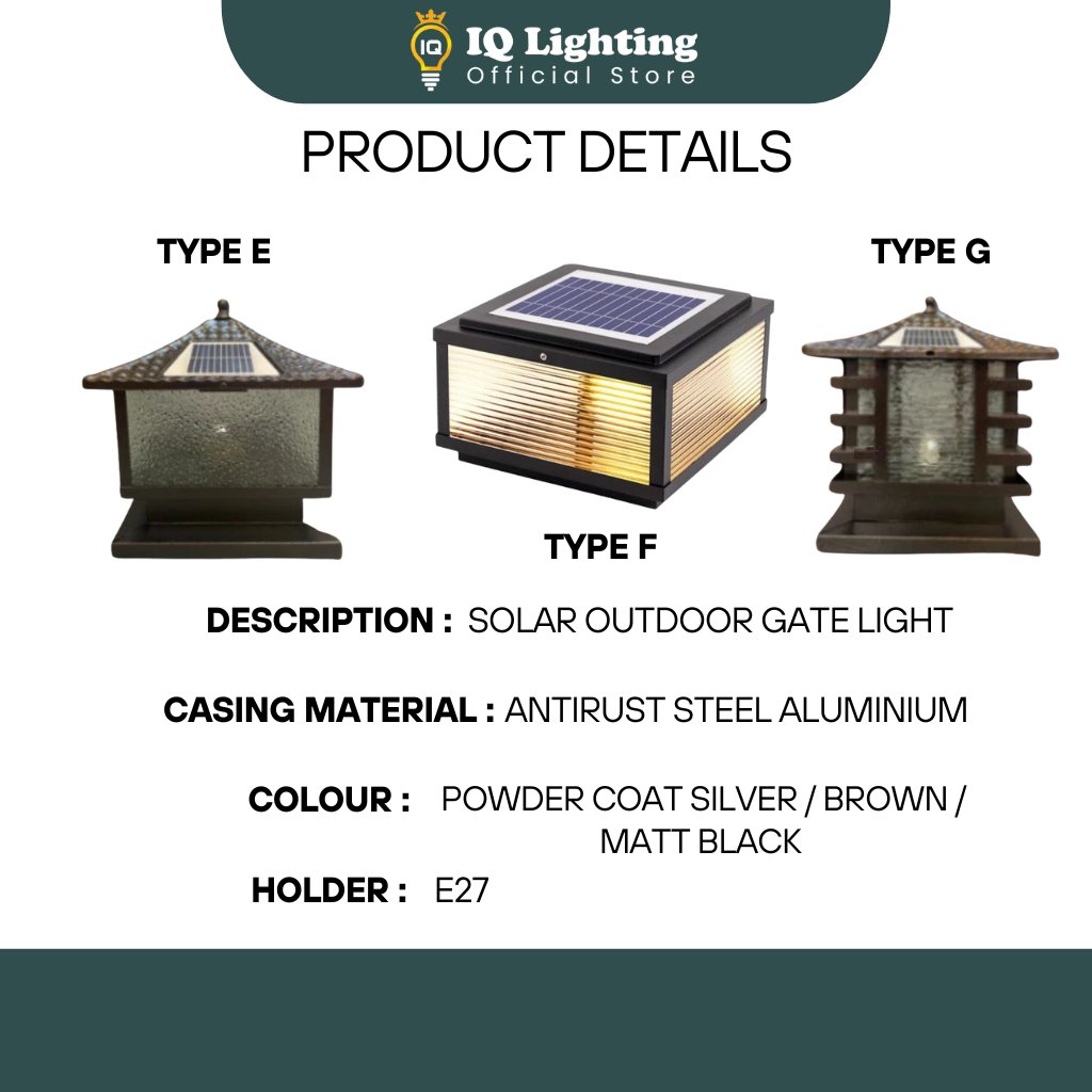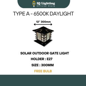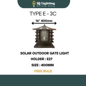 Materials – Aluminum Top Casing c/w 4pcs of Solar Panel, Acrylic Opal Cover, Metal Body and E27 Porcilin Holder