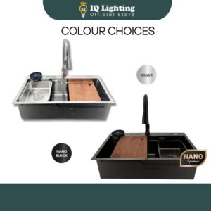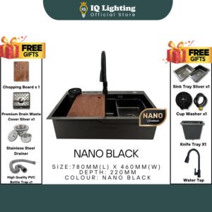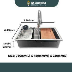Be the first to review “STAINLESS STEEL 304 SINGLE BOWL SILVER & NANO BLACK HANDMADE WORKSTATION KITCHEN SINK 780MM WITH PULL-OUT WATER TAP CHO”