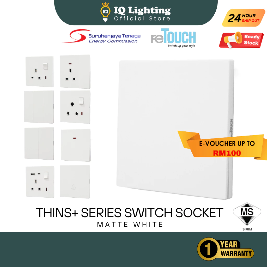 [WHITE] reTouch Thins+ 1/2/3/4 Gang 1/2 Way 13A/15A/20A Switch & Sockets SIRIM