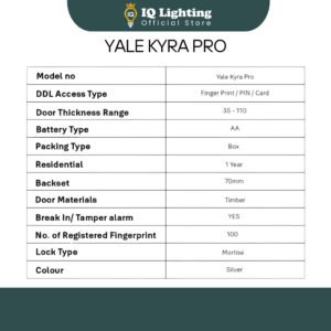 Yale Kyra Pro Push Pull Mortise Slim Smart Door Lock – – Fingerprint/ PIN Code/ CPU Card/ Bluetooth/ 2 Years Warranty/ Free Installation