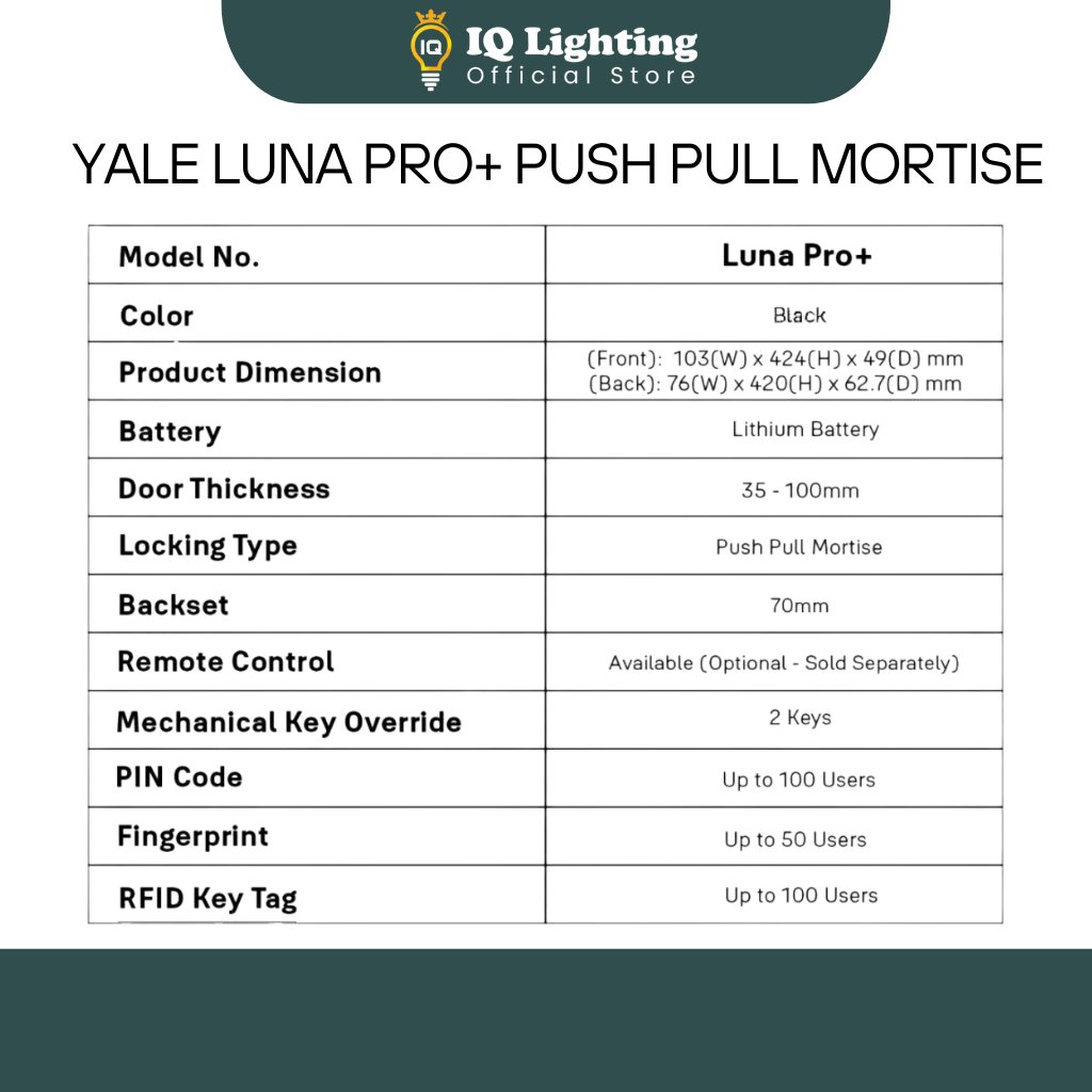 Yale Luna Pro+ Push Pull Mortise Smart Door Lock – Face Recognition/ Fingerprint/ PIN Code/ CPU Card/ 2 Years Warranty/ Free Installation