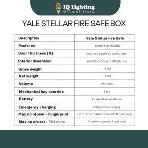 Yale Stellar Fire Safe Box PF4872B – Fire Resistance/ 30 Fingerprints/ USB/ 2 Mechanical Keys Override/ 1 Year Warranty