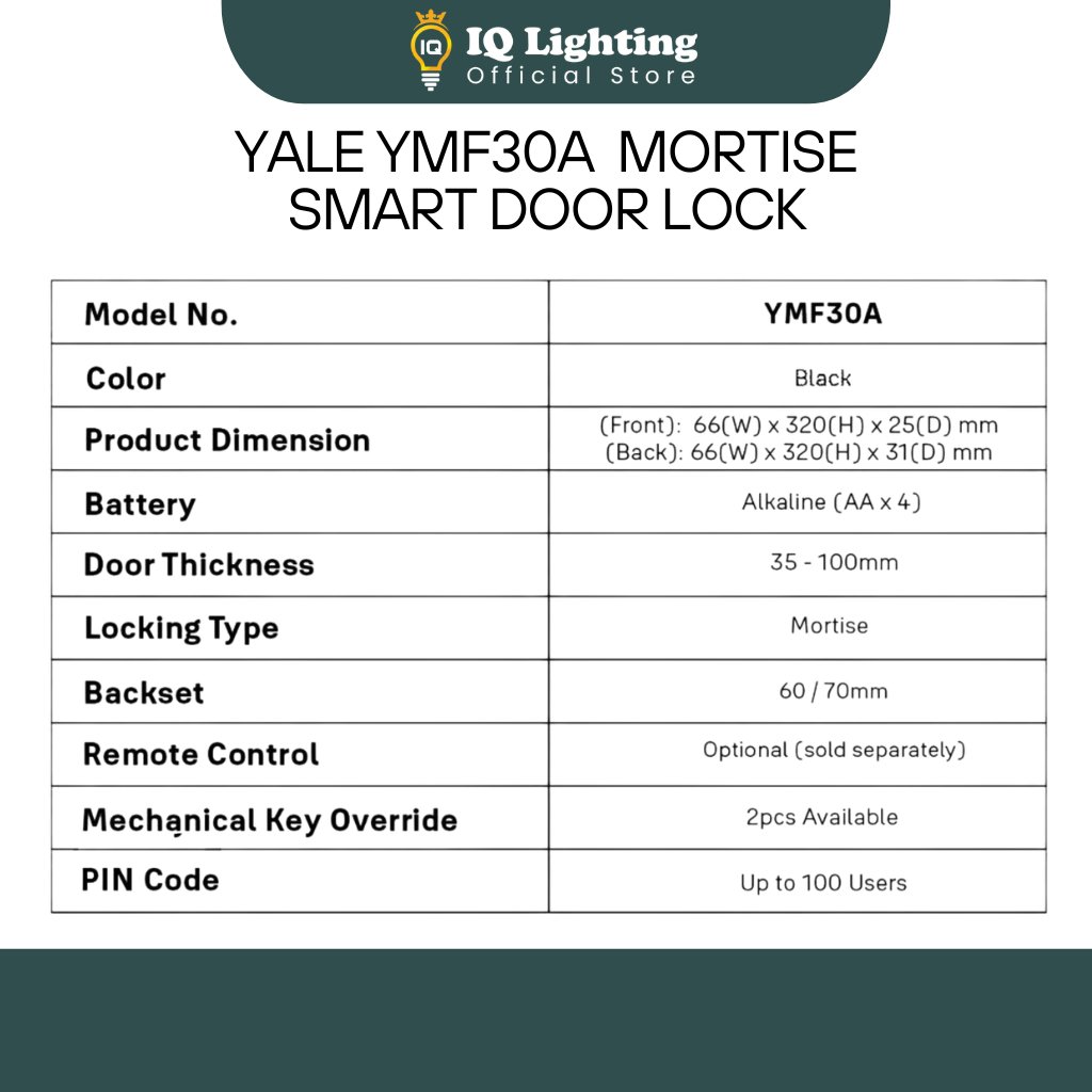 Yale YMF30A Mortise Smart Door Lock (Black) – PIN Code/ Bluetooth/ Yale Home App/ 2 Years Warranty/ Free Installation/ 0% Credit Card Instalment